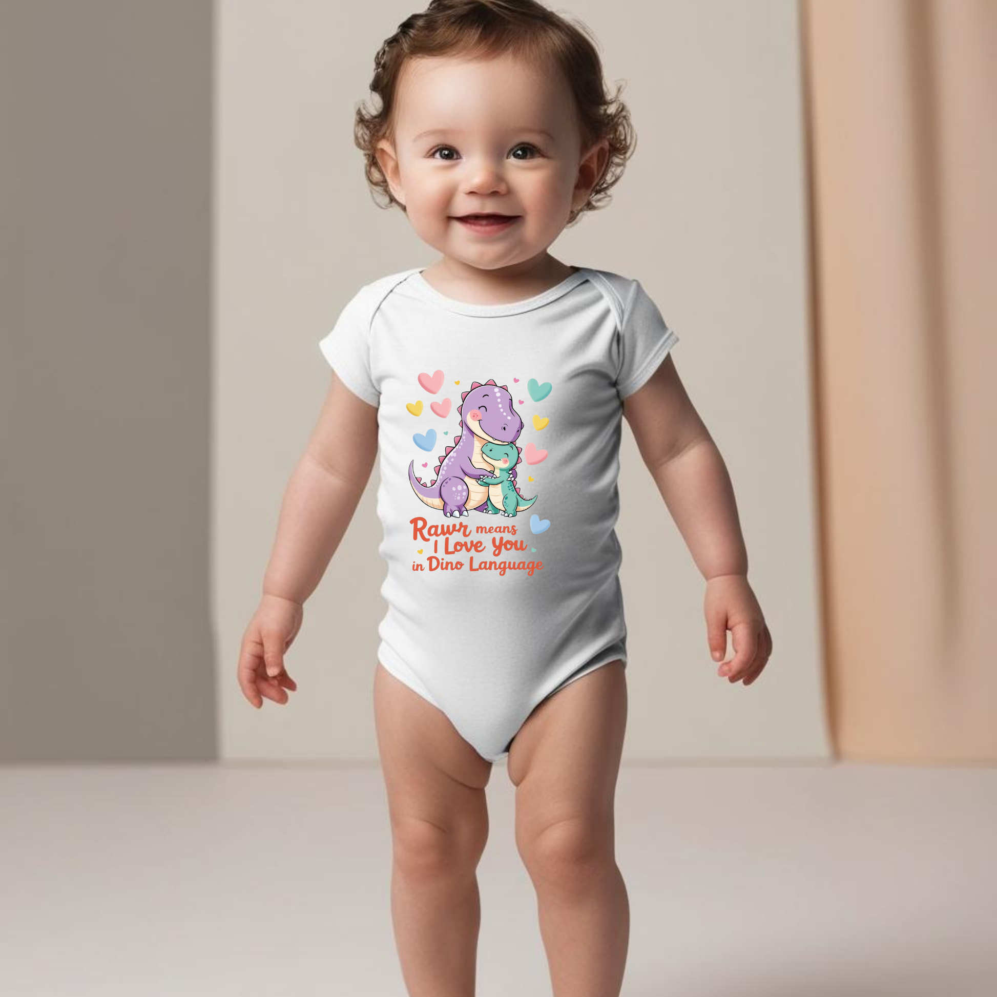 Baby Dinosaur Romper - 'Dino-Mite Baby' Design | Soft Cotton Toddler T-Shirt (Unisex)