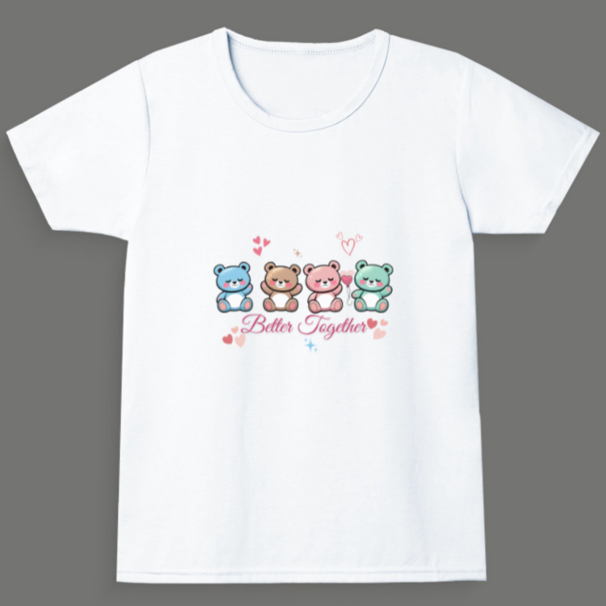 Cuteness times four! Featuring 4 adorable teddy bears and the heartwarming text Better Together, this tee is all about friendship and love. Made from pre-shrunk 100% cotton (180 GSM) – soft, breathable, and gentle on skin.