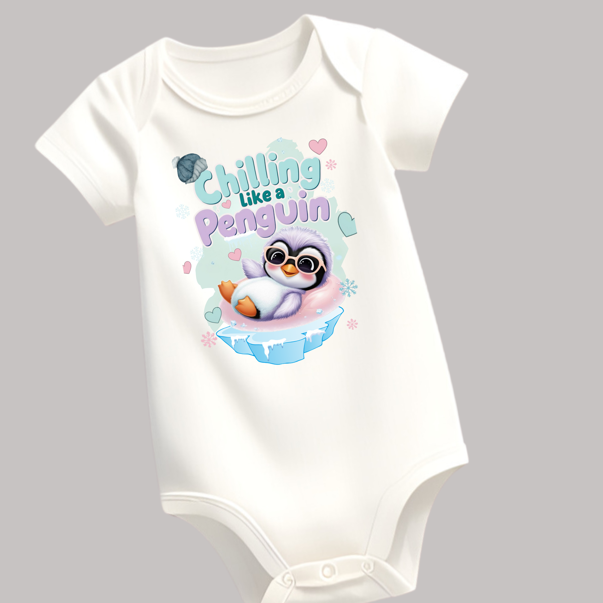 Your baby is born to chill, and our "Chilling Like a Penguin" romper is perfect for those adorable relaxed vibes! Featuring a playful penguin print, this super-soft cotton romper keeps your little one cozy and stylish all day long.