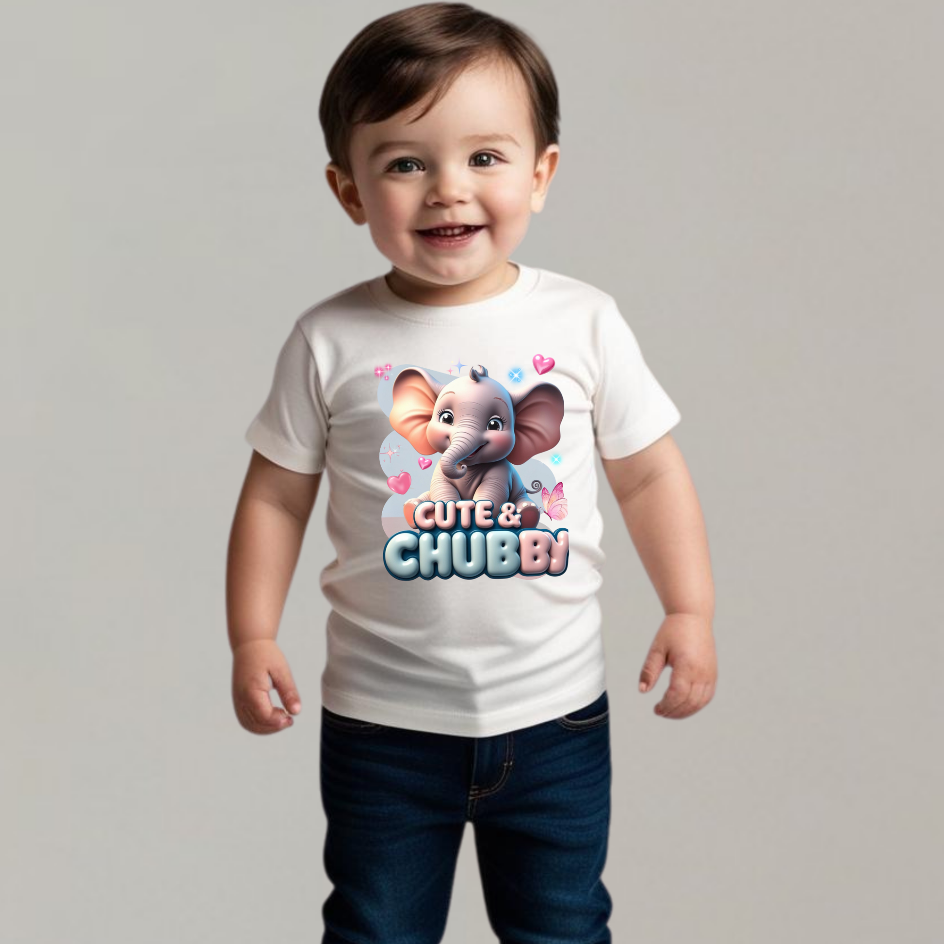 Let your little one flaunt their cuteness with our Cute and Chubby - Baby Elephant T-Shirt from the Playful Paws Collection! Featuring an adorable baby elephant graphic and the catchy text "Cute and Chubby," this T-shirt is perfect for playful, cuddly days.