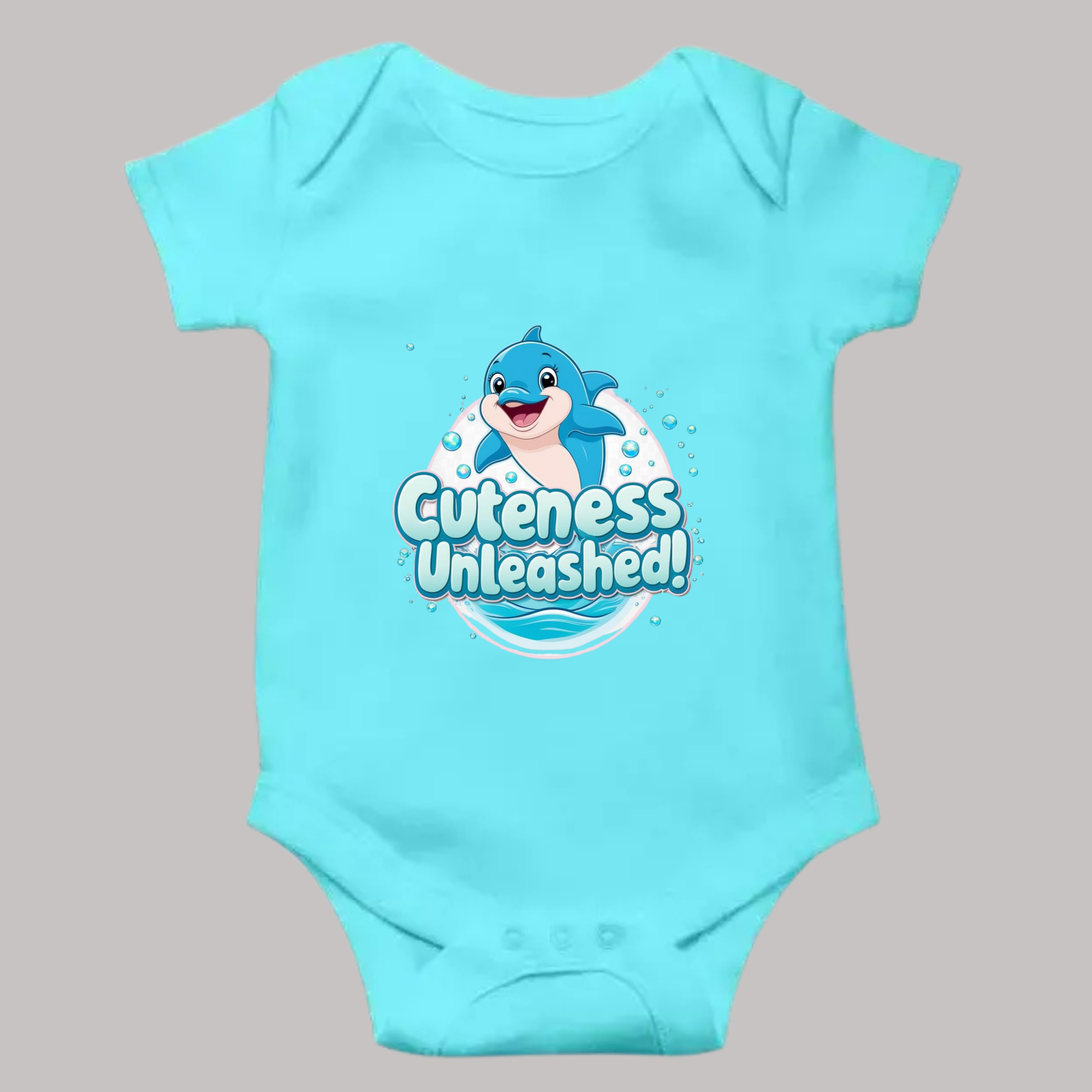 Let your baby make a splash in style with our "Cuteness Unleashed" romper! Designed with an adorable dolphin print, this super-soft cotton romper keeps your little one comfortable while looking irresistibly cute.