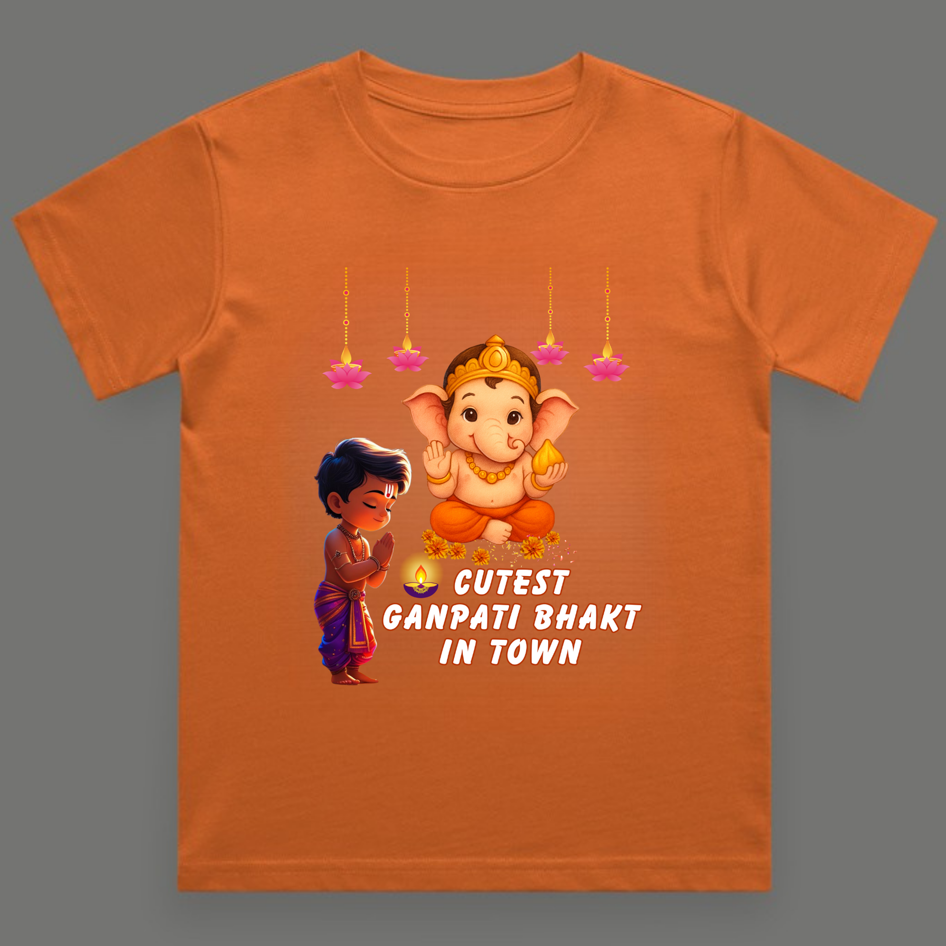 Cutest Ganpati Bhakt in Town | Boys Crew Neck T-Shirt