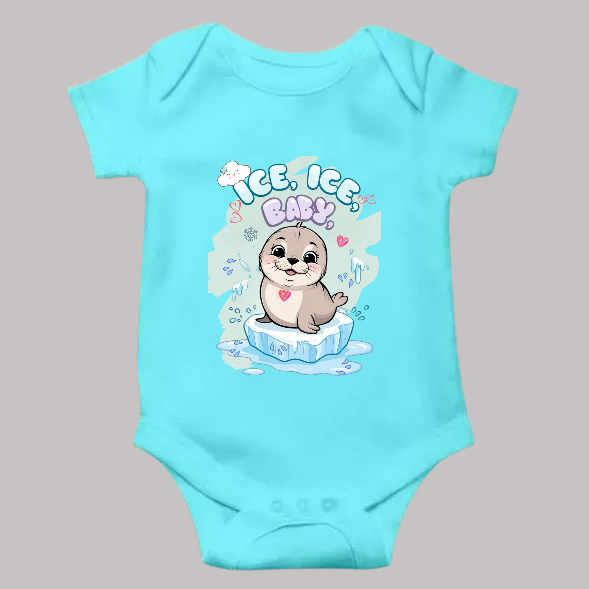 Let your baby chill in style with our "Ice, Ice Baby" romper! Designed with an adorable seal print, this romper is soft, breathable, and perfect for delicate baby skin. Whether for naptime, playtime, or outings, this comfy cotton romper is a must-have for little trendsetters.