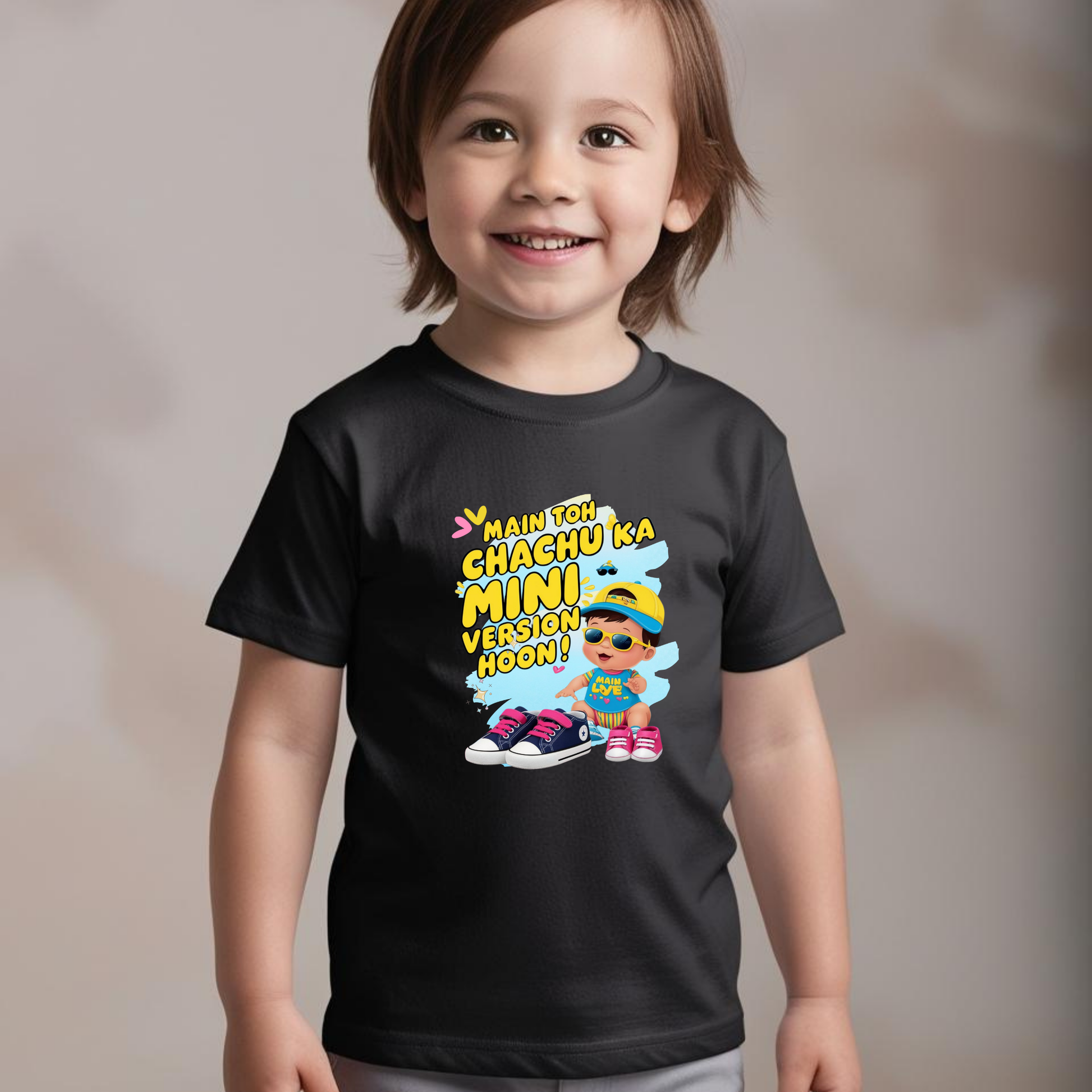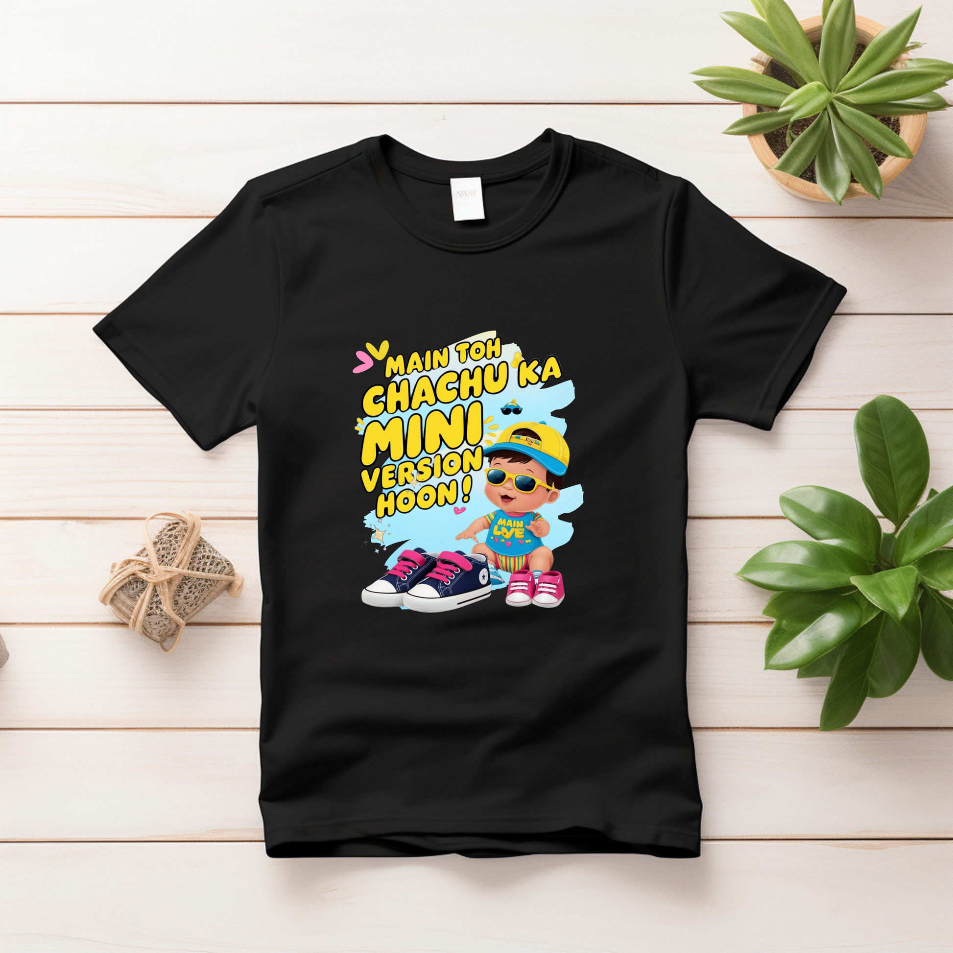 This fun “Main toh Chachu ka mini version hoon!” tee is a must-have for the little copycat in the family — same swag, same attitude, just in fun-size!