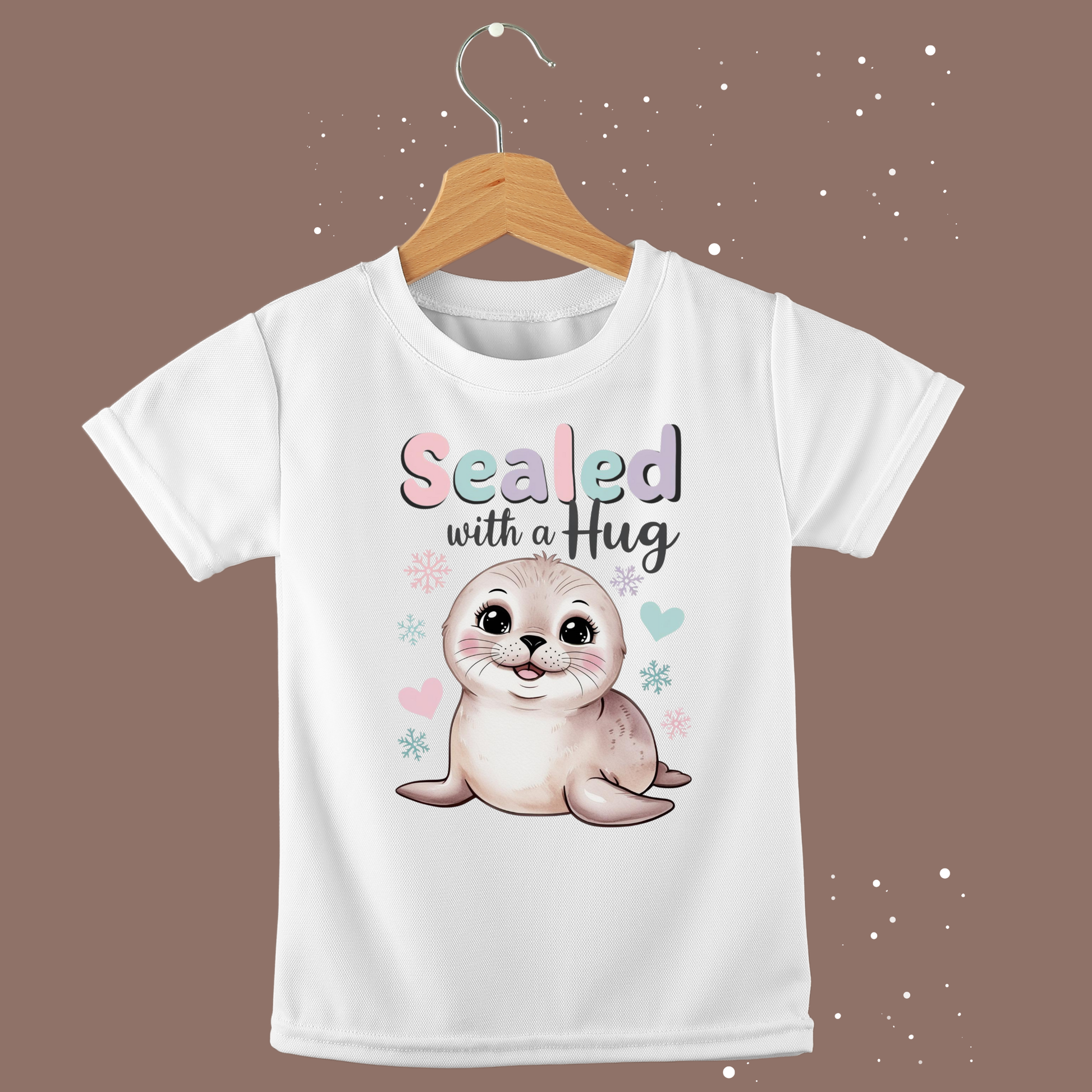 Wrap your little one in love with our adorable "Sealed with a Hug" T-shirt! Featuring a cute seal design, this soft and breathable tee is perfect for everyday wear. Made from premium cotton, it ensures maximum comfort and style for your baby or kid.