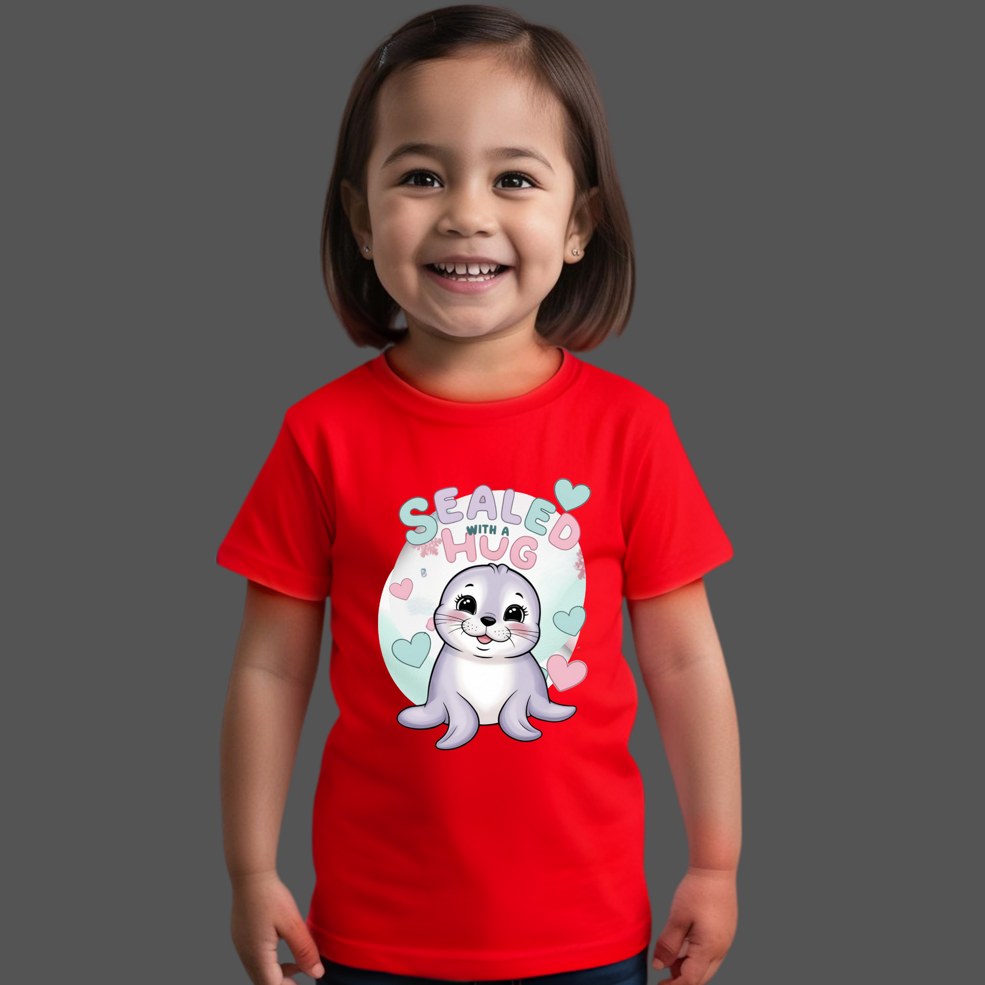 Wrap your little one in love with our adorable "Sealed with a Hug" T-shirt! Featuring a cute seal design, this soft and breathable tee is perfect for everyday wear. Made from premium cotton, it ensures maximum comfort and style for your baby or kid.