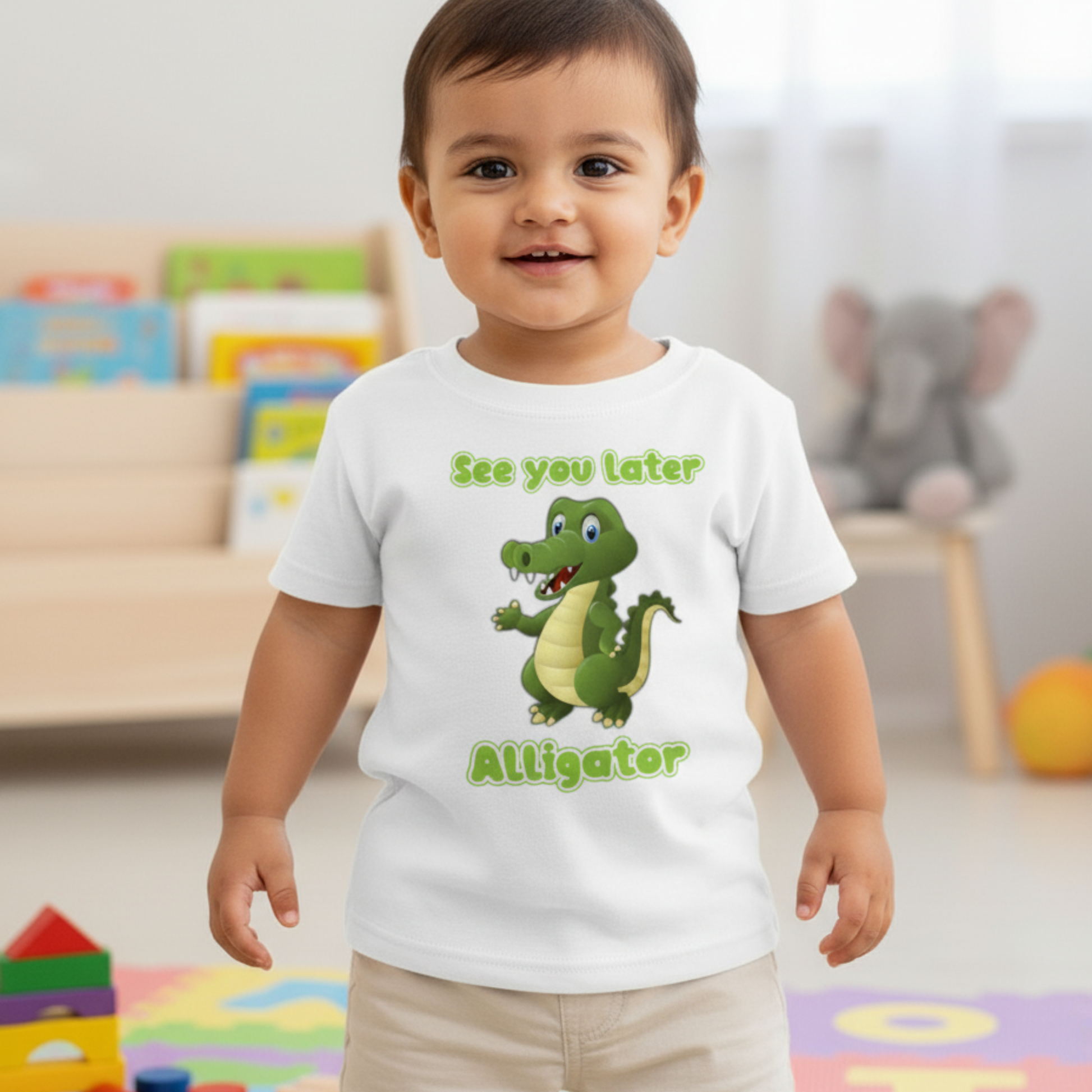 Make your little one’s outfit fun and playful with our “See You Later, Alligator” baby tee! Featuring a cheerful alligator design and catchy text, this tee is perfect for playdates, everyday adventures, and photo moments.
